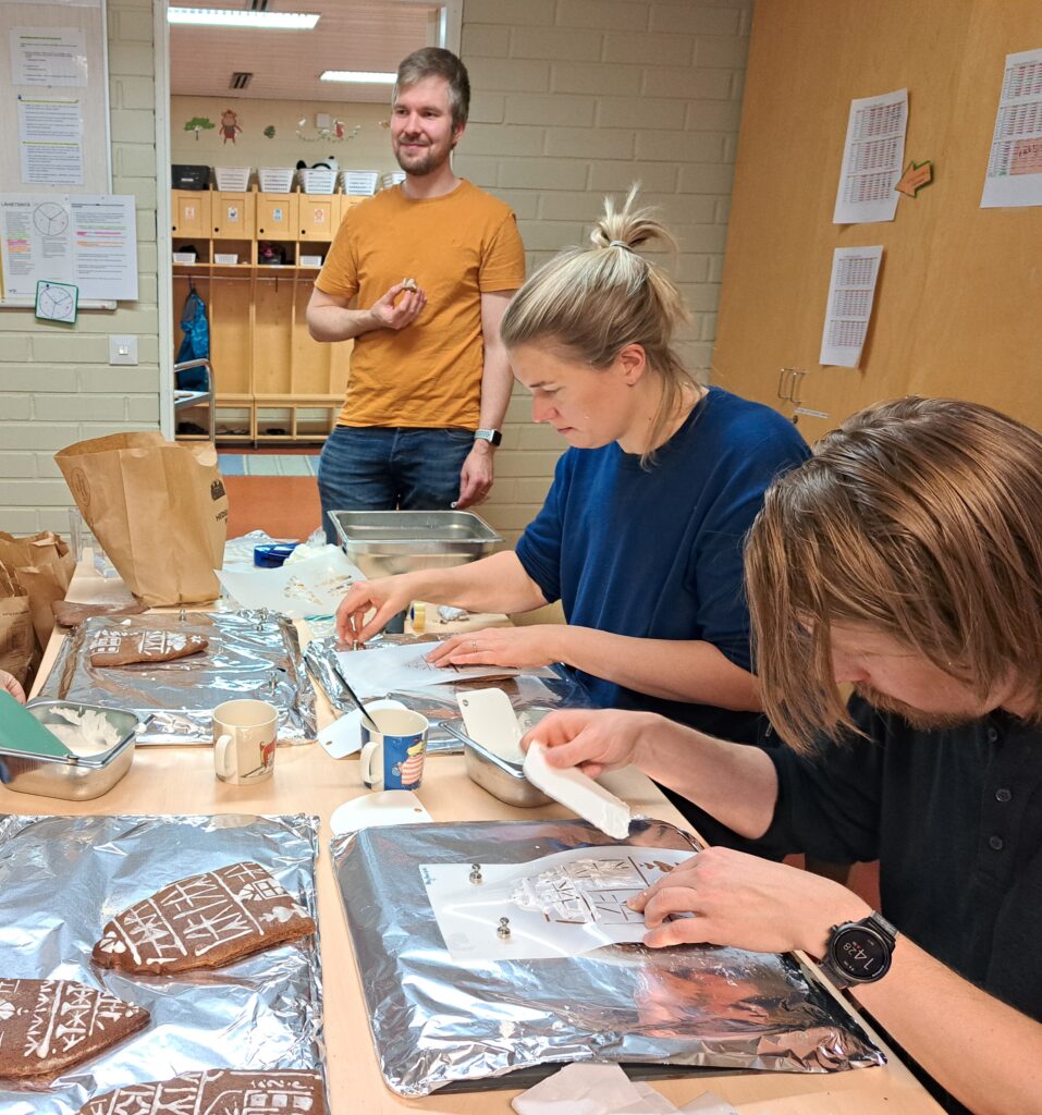 Tänään Spielhausissa vanhemmat tekivät valmisteluja tulevia joulumyyjäisiä varten.